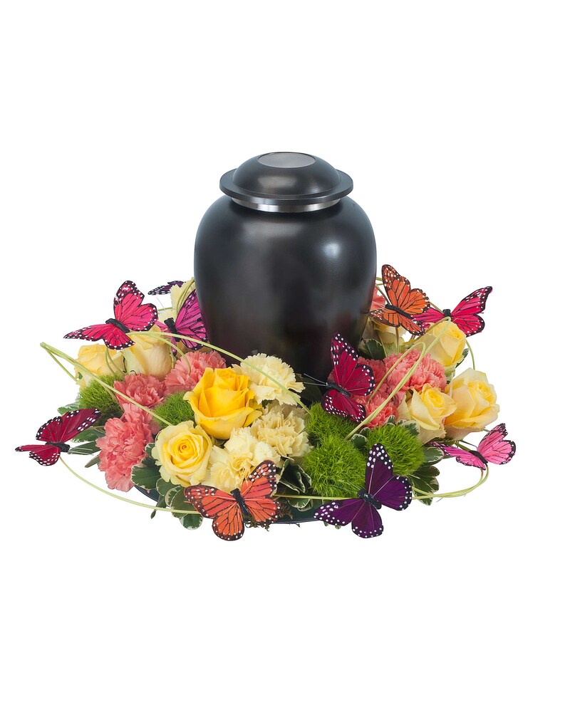 Butterflies surround the urn of your loved one as a sign of hope and love.